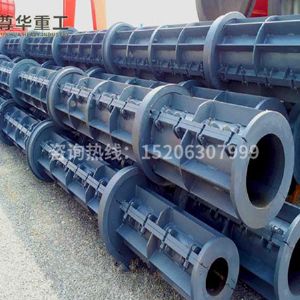 該模具是鋼板經(jīng)壓制而成,筒體上布有縱向和環(huán)形筋板,具有強(qiáng)度大、剛性好,經(jīng)久耐用等特點(diǎn)。鋼模采用分段加工,整體組裝,具有運(yùn)輸方便,維修方便等優(yōu)點(diǎn),是制作預(yù)應(yīng)力鋼筋混凝土電桿的模具,亦可制作非預(yù)應(yīng)力鋼筋混凝土電桿。